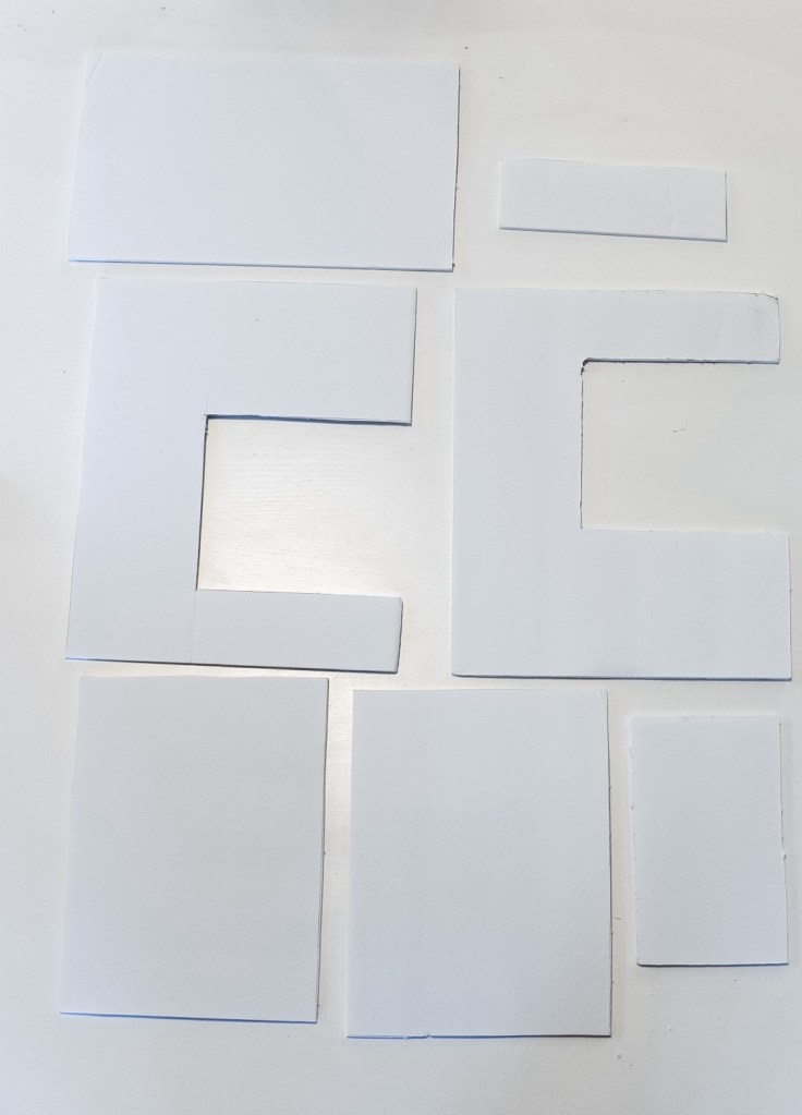 To begin, carefully cut out pieces from foam core and securely glue them together. This forms the foundation of our play coffee machine.