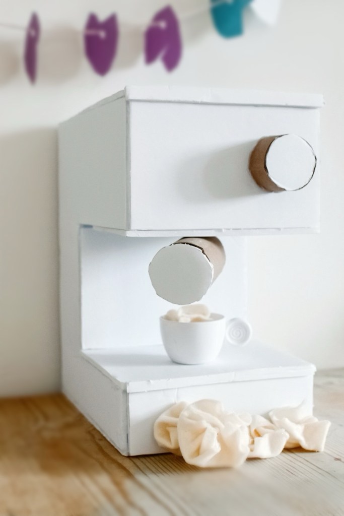 Not only is this DIY project fun and easy to make, but it also encourages imaginative play and creativity in your child. They can use their play coffee machine to create their own coffee shop scenarios, practice counting and math skills, or simply enjoy some pretend play with friends.