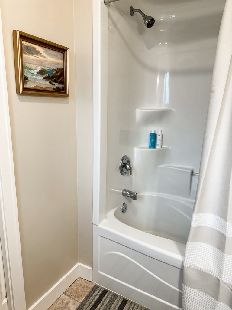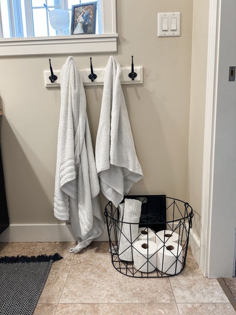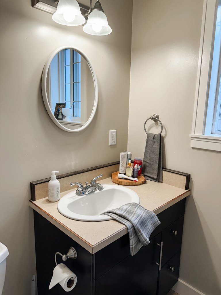 It’s not about what you have- but how you use it! A lot of these items I pulled from my “stock pile” aka storage under my stairs or from other parts of my home that could do without. I’m a big believer that you don’t need to spend lots of money to make your space feel like home. You also don’t have to keep up with what’s trending or change your space seasonally, if you don’t want to. This bathroom was definitely neglected since moving in- and this welcomed change is a breath of fresh mountain air!