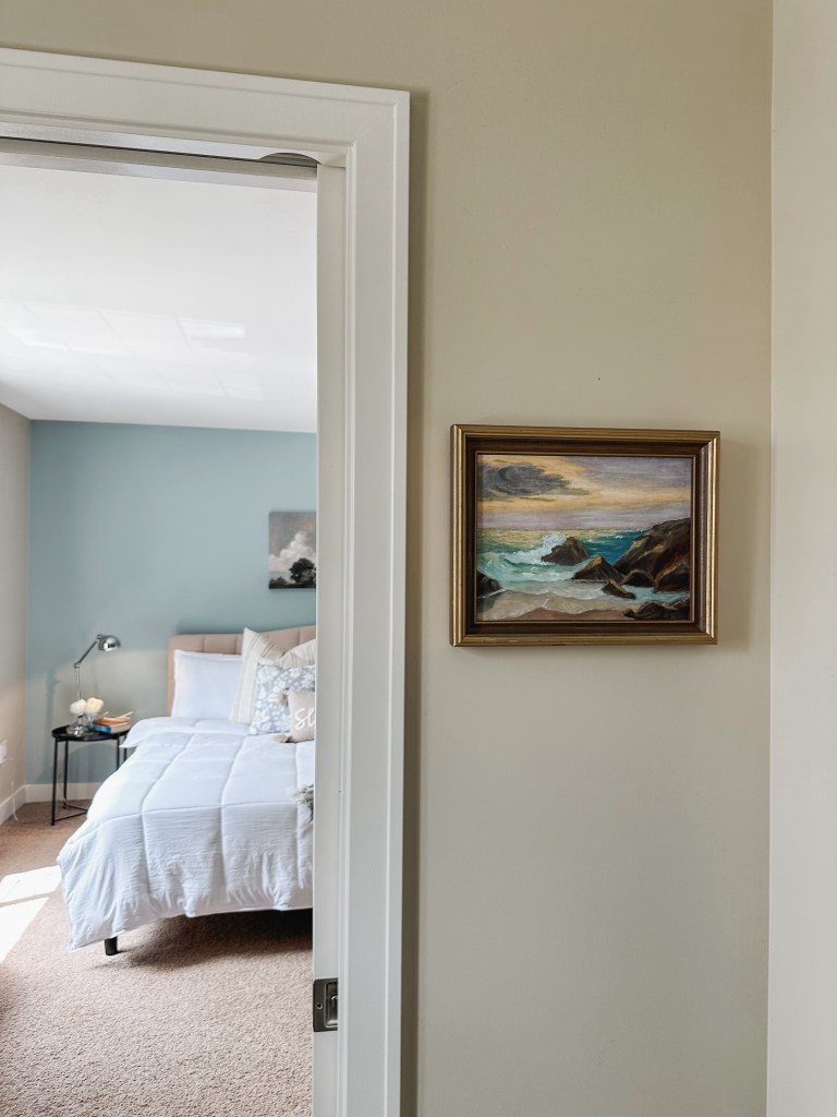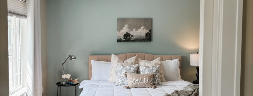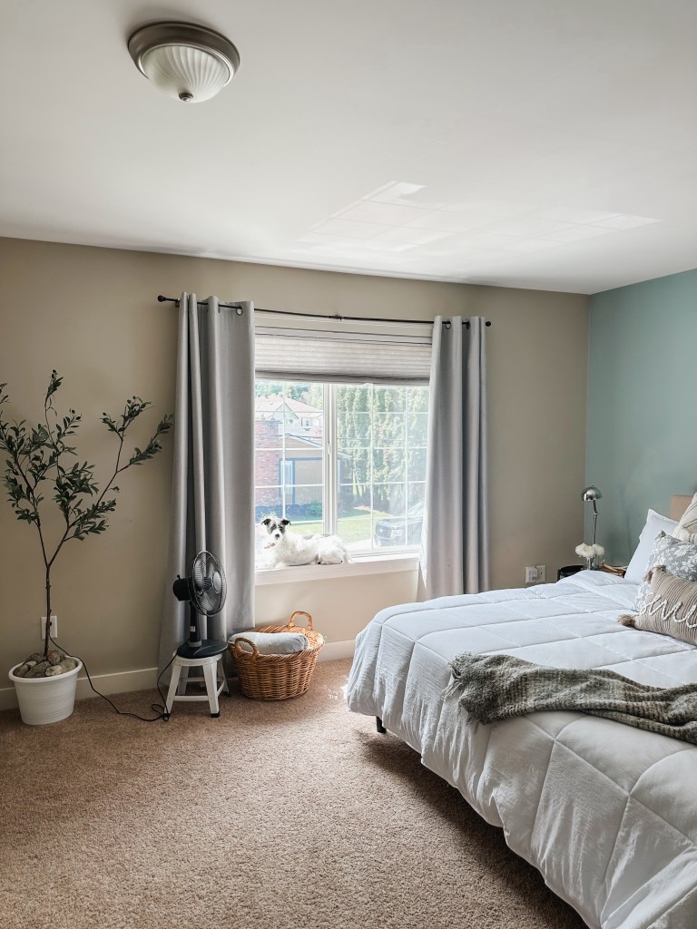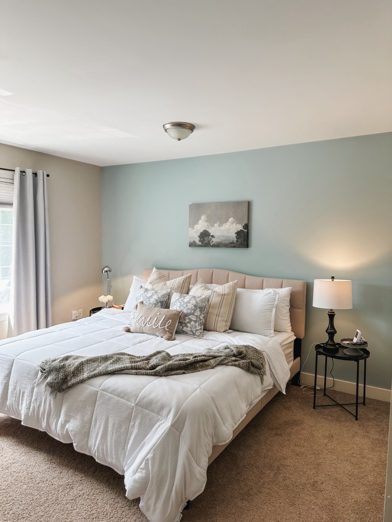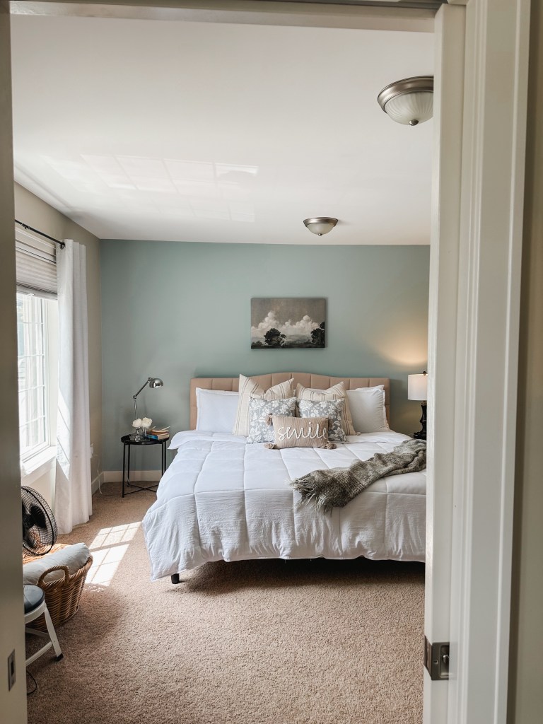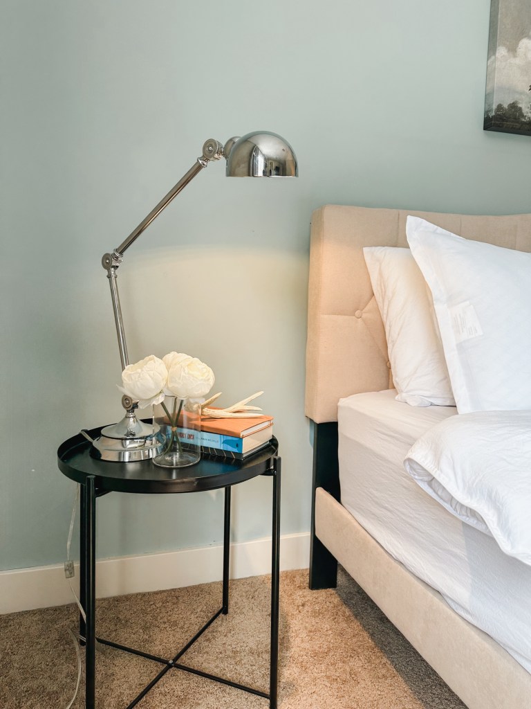 All this better sleep kickstarted our bedroom mini makeover. We upgraded to a king mattress (heavenly!) and made a few small changes to make the room feel comfortable. We did buy a television for the room… and I know, I know, screens aren’t great for the bedroom! But I’ve been loving having my own little “nest” where I hide out in after the kids are asleep and Nick is on nights. I bring up a little tray of a snack and a cup of Calm tea for the night and I don’t leave the room! I feel so relaxed at the end of the day with a space that’s not kid-ish and somewhere that’s cozy and mine!