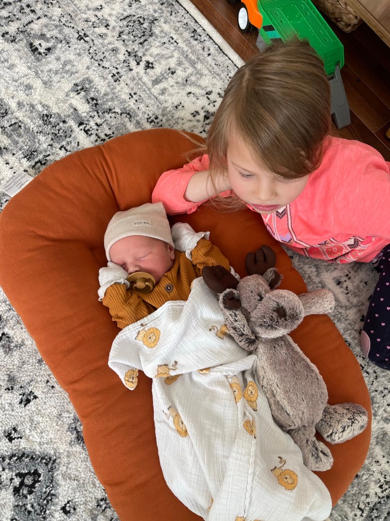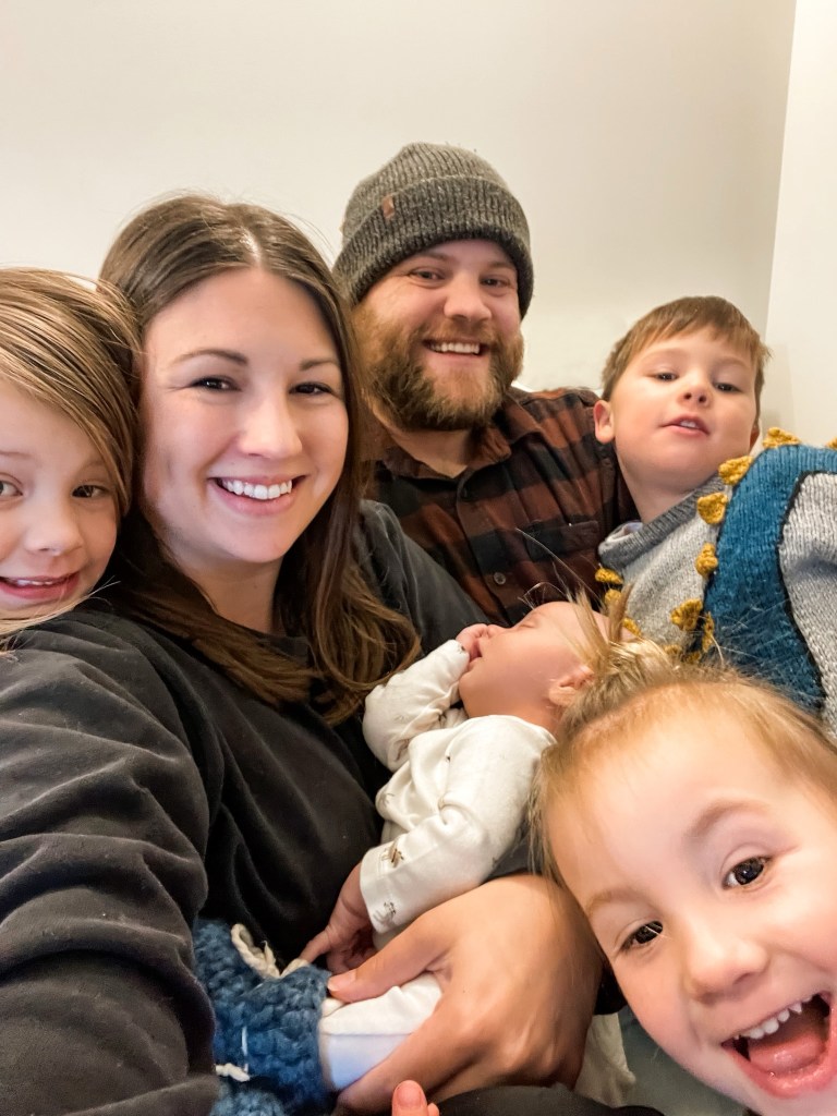 The kids meeting Harland in the hospital was such a special moment. The girls helped their daddy change Harland’s first diaper and put him in his outfit for the night. Unfortunately I had postpartum hemorrhaging, which was expected because of previous births with the same complications. I was laying on my bed and my daughter, Oaklin wanted to cuddle. I wasn’t bleeding heavily at this point and so she came up for big hugs between my legs. My former youngest who missed her mommy so much, was so excited for her sibling, but needed me just as much. We had a lot of snuggles and chats and then my hemorrhaging began… and there was blood everywhere. Good thing Nick swept into action and very quickly picked her up and took her out of the room, took off her soiled shoes and pants and wrapped her in his sweater. Thank goodness she’s not traumatized by this and doesn’t even remember these details today.