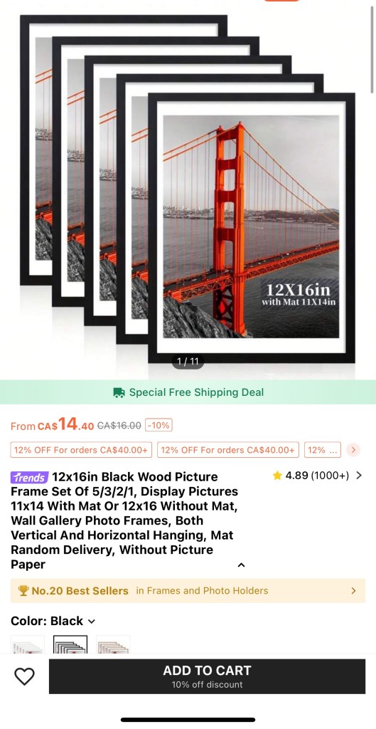 I found these great budget friendly black frames with white matting on SHEIN. The quality is actually pretty decent!