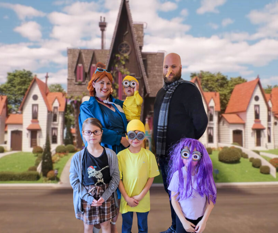 This year we decided to dress up as our favourite characters in Despicable Me 2 movie. Harland has been watching “minion show” on repeat lately. He laughs at the minions and especially the purple minion which is what our daughter Oaklin decided to dress as. We had a great time gathering pieces for each of our costumes!
