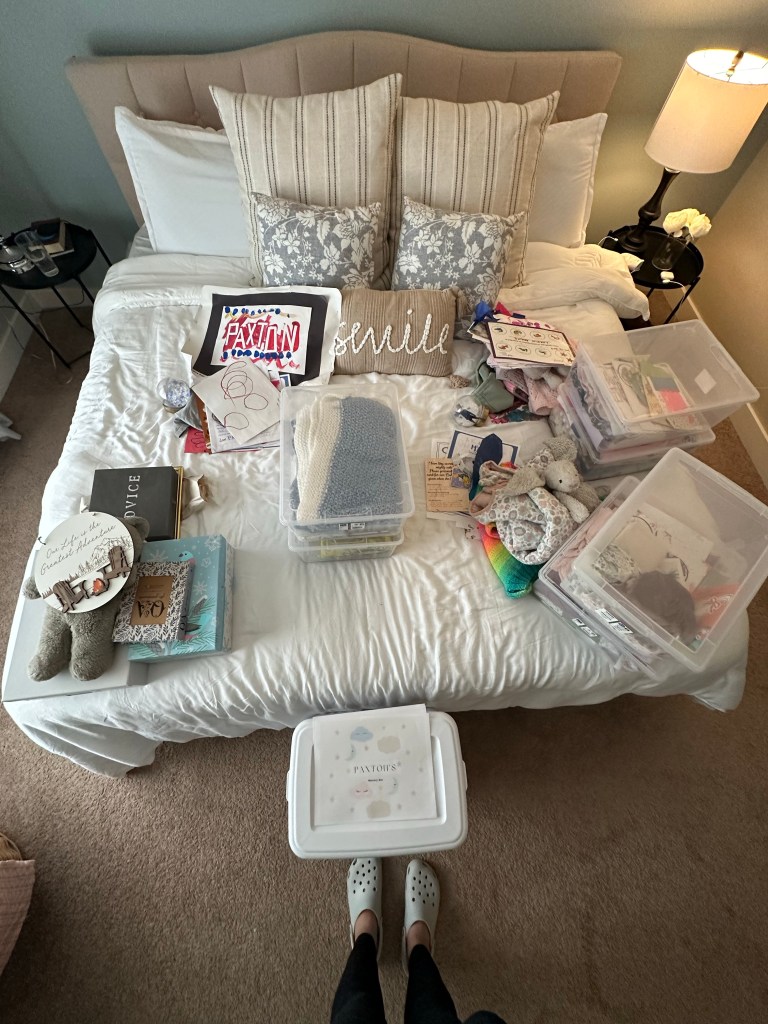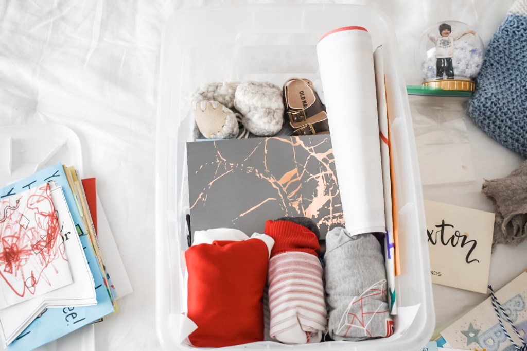 Anything that has meaning that reminds you of a time with your little one, is worth preserving. My rule was that it needs to all fit in the bin. I wasn’t going to over do it with multiple bins per child. Each one will have something special gifted to them when they’re older.