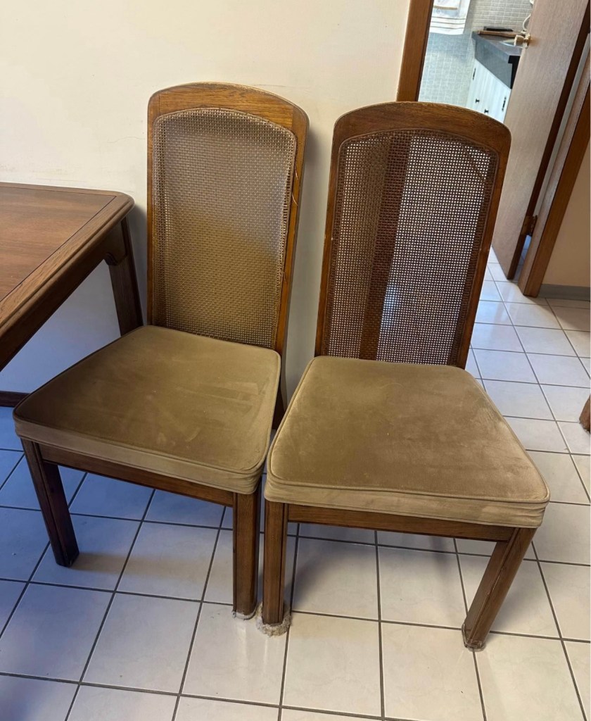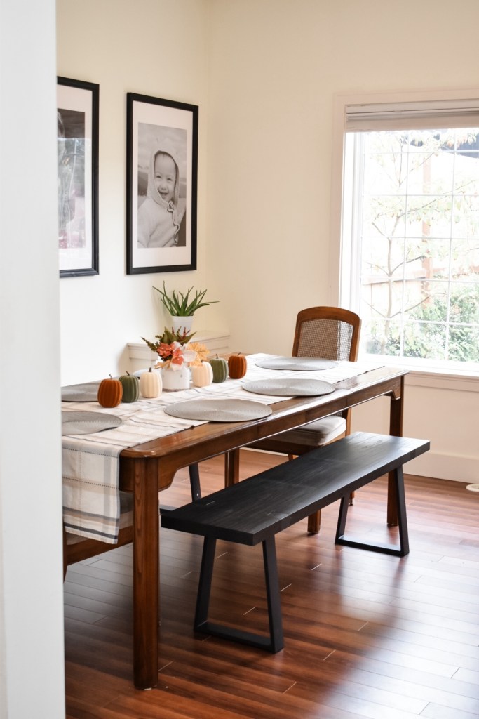 We decided to get a larger secondhand wooden table that came with three cane back chairs. We got a fair price because we didn’t mind the incomplete set as we were planning on pairing it with simple wood benches on either side.