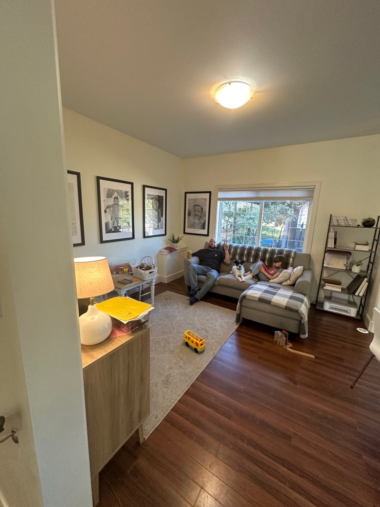 We’ve been in our current home for two years now and our needs have definitely changed as the kids get older. There’s a living space directly at the front of the house, the kitchen in the middle and then a bit of living/dining space towards the back of the house just off of the kitchen.