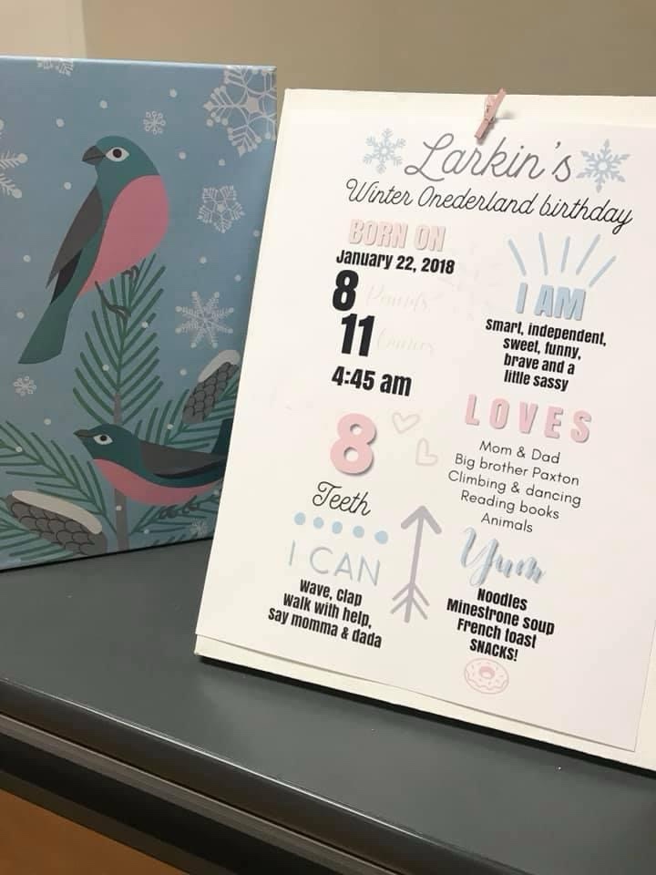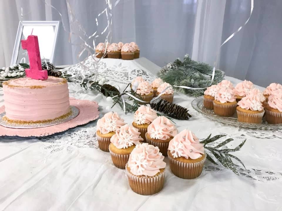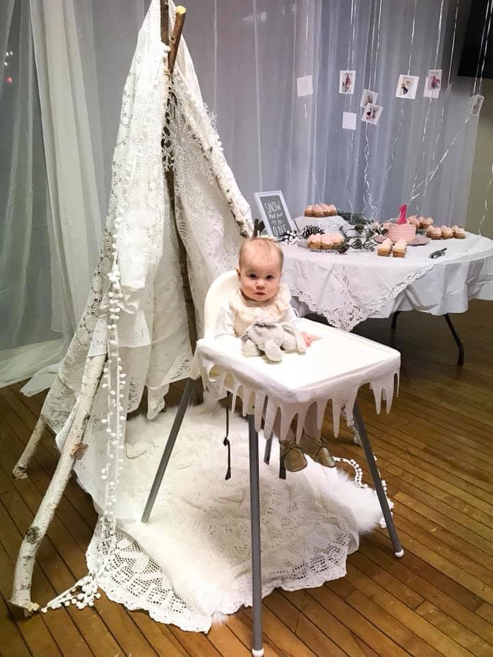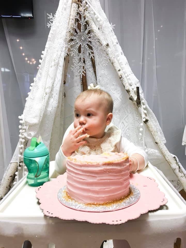 Larkin was born in January, so for her first birthday we did a winter ONE-derland theme. I loved the soft pink, fake snow and little lace and wood elements. She wore a handmade knitted onesie outfit that I adored.