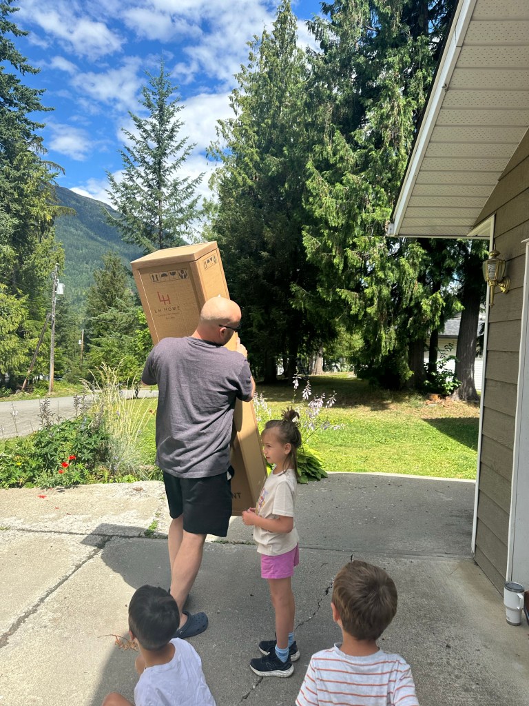 …. again! We did our big cross country move in the spring of 2022 and landed in a semi small town in the mountains. It’s still a very robust, hustling town (not as sleepy as we thought it would be) with lots of exciting restaurants and a culture that’s very full of life. When moving, we originally hoped to buy a house there. I prayed for all the things I wanted in a home; a big back yard with a fence, a porch, a quiet area, a mud room, better main floor layout than what we had, a spot to have a fire pit, etc. I even had a mood board of it on Pinterest! I feel like all of these details were always stirring in my heart for the future. One Friday at noon Nick got a call ASKING if he would want to work in Kaslo, BC an even smaller, quant and charming town in the Kootenays. There were some obvious downsides of taking the job like leaving the amazing friends we made here and the kids school that we loved dearly. Another downside was that this position was only for a limited time, so we couldn’t really put down roots in Kaslo either. When Nick got off the phone, he called me right away from work to tell me about this job offer. “Should we do it??”. Here’s the catch… we had by the end of the day to make a decision. We confided in one of our close friends and asked them to pray that we would have the confidence and peace in whatever decision we made. We realize that must have been a hard prayer for them to pray; being our village and knowing that there was a possibility of us moving an hour away. Throughout the day I felt like I had so much confirmation in a decision to move- even if our future (when this term is up) is unknown. Once we said YES we got details on the house we would be living in… and omg guys, it checked every single box of mine and then some! It felt like a dream. There’s a big forest on our property where the kids can just be feral and run wild. There’s a beautiful front porch that I love to sit on and watch the kids bike on their own on our very, very quiet street. Nick is able to be more present at home and his mental health has improved greatly. Last week we sat around our fire pit with marshmallow sticky hands while the littlest ones ran through the sprinkler for a “summer shower” before bed and Nick and I just looked at each other in disbelief that this is our life. We’ve literally always wanted a life like this for our family and we are living it. It’s such a humbling and heartwarming feeling to wake up each day in this home and slow paced town.