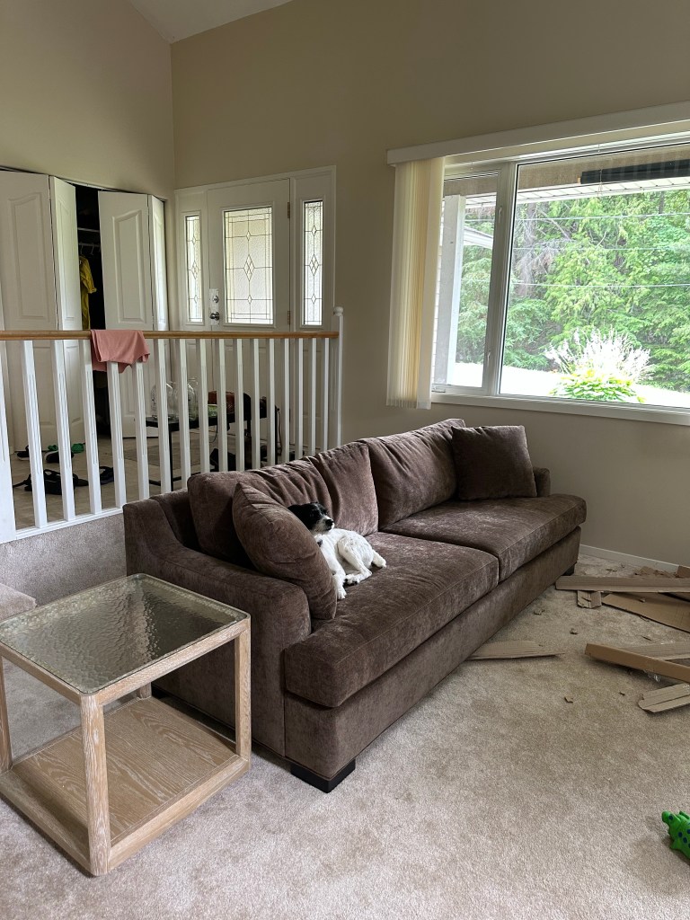I’ve been really enjoying trying to make this house our home! We’ve been living with no furniture in our living room because we decided to order custom pieces. We haven’t minded too much because we have a rec room/family room which is our tv room and it has a sectional to lounge on. BUT earlier this week we got half of our delivery and it’s looking so good! Here’s a little preview…