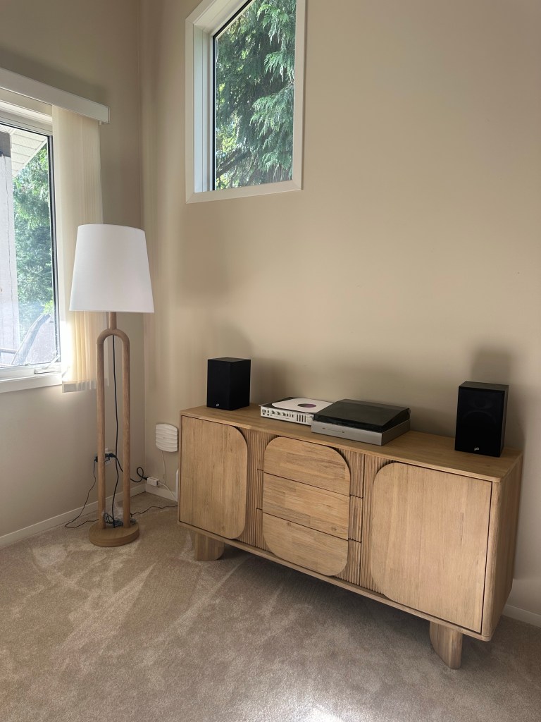 It’s still a work in progress, but I’m reminding myself that building a home can take time. Our second shipment should be arriving in a few weeks and this living room will feel more complete! Nick has already enjoyed listening to records again in this sweet space.