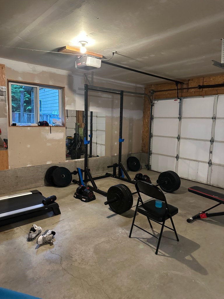 We also created a home gym in our garage! It may not look fancy, but we feel so thankful to have it at home for convenient work outs!
