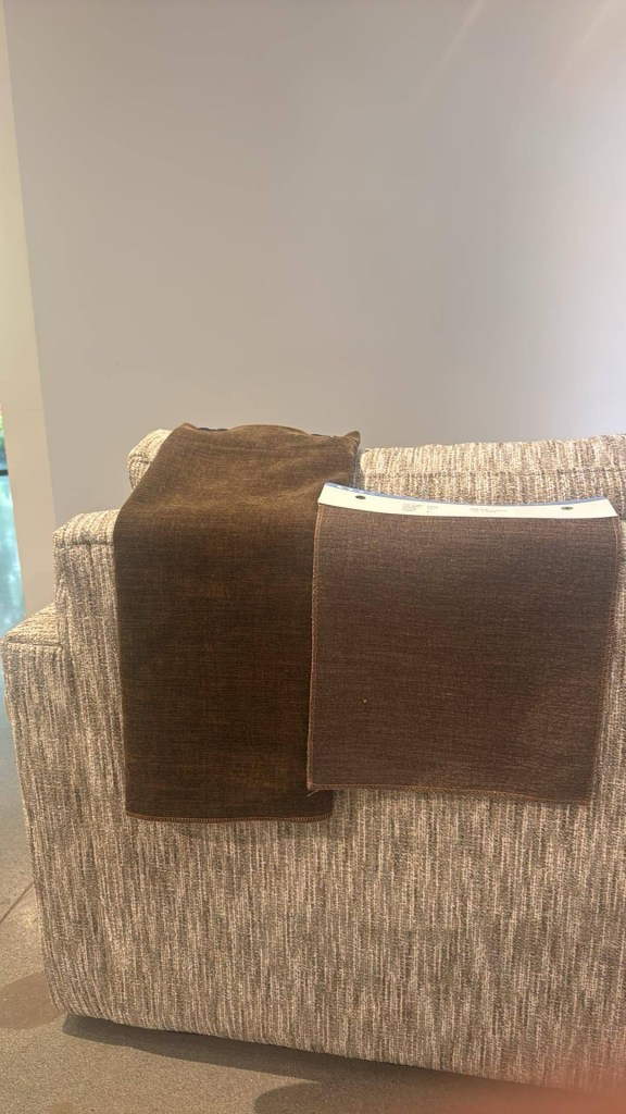 I even saved a picture of Nelson’s Prestige Hotel lobby as a brown fabric Nick and I liked for inspiration haha.