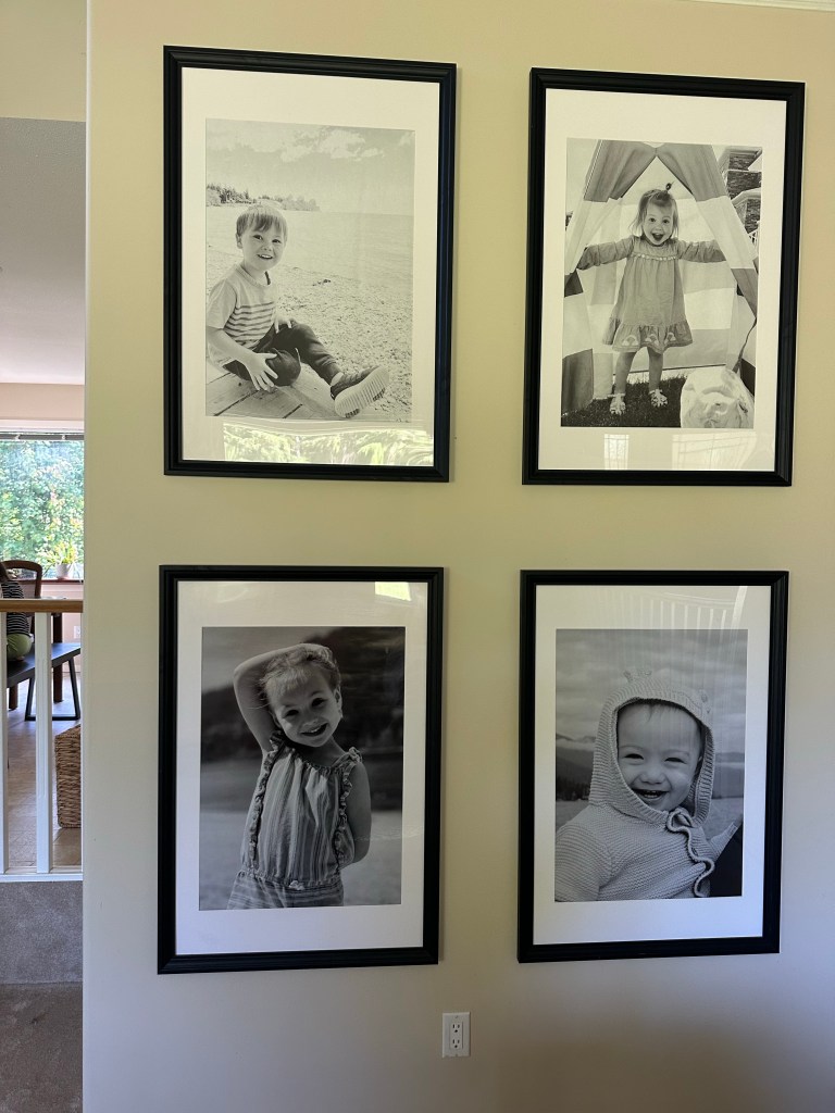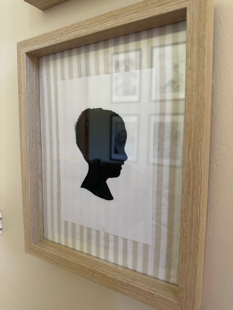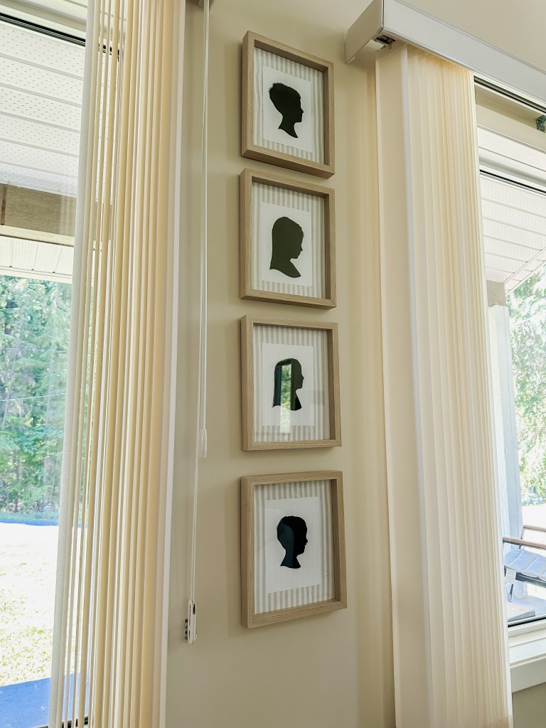 What do you think of these silhouette pictures of my kids?? I love that they add a bit of height and warmth in between the windows. I made them at my last crafting girls night with a sweet momma friend! It was SO much fun to make. Fun fact, the fabric backing behind the prints are tea towels I found in a pack at Walmart for $8! That counts as a score to me.