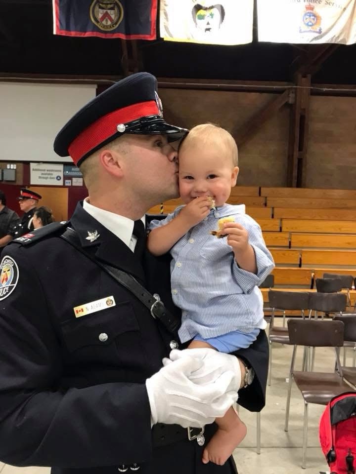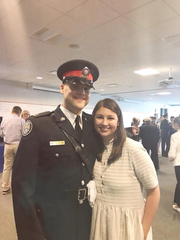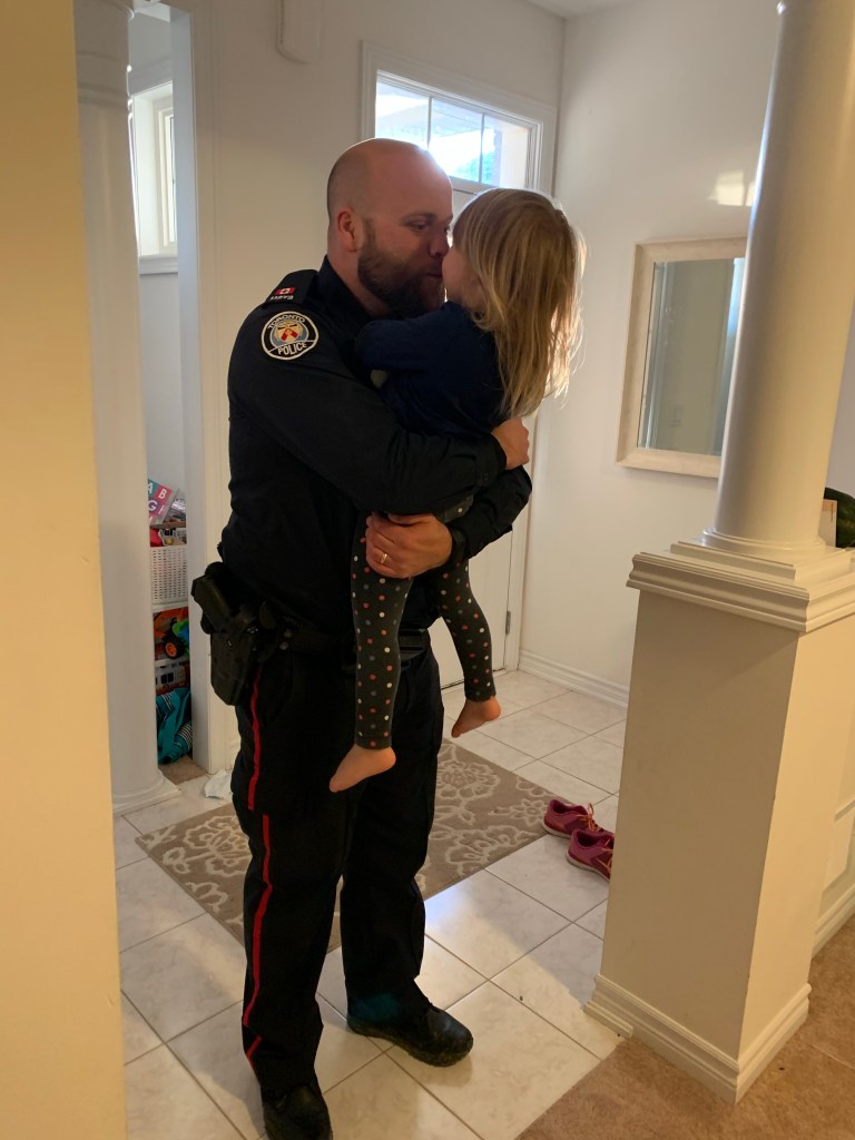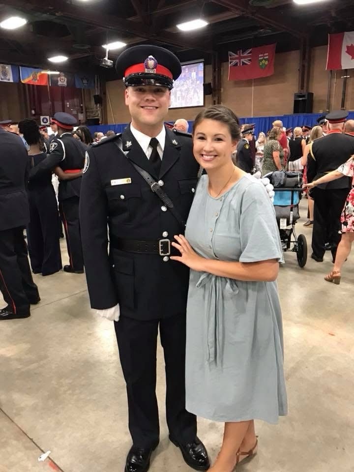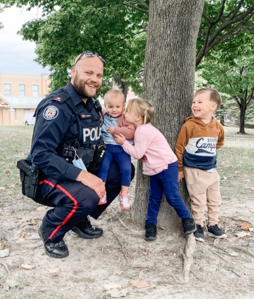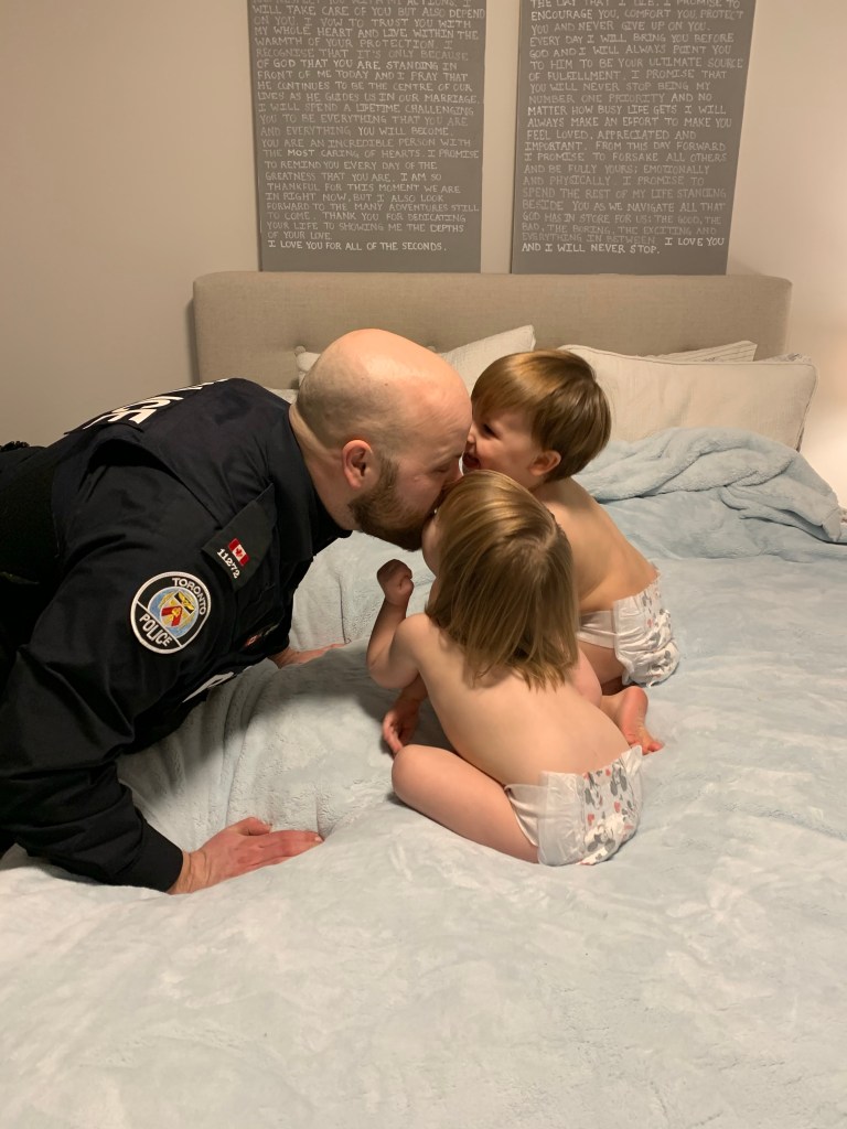 When I first met Nick, he wasn’t a cop. He worked as a social worker at a homeless shelter in a not so picturesque part of downtown Oshawa. Becoming an officer has been an almost life long dream for him, so of course as his wife, I stood beside him in this. At the time, there was so many obstacles for even getting in the door; a hiring freeze, growing our young family at the same time, needing a resume that diversified you and made you stand out from thousands of applicants. But I don’t know, something in my gut knew he’d make it and he’d have his dream career. I plastered inspirational messages, scripture and my prayers on old school q-cards and taped them around our teeny tiny apartment. The journey to achieving his dream wasn’t paved with shortcuts or status—it was a testament to his hard work and unwavering dedication, just like many officers before him. We are truly grateful for the invaluable mentorship he received from trusted friends and for the wonderful individuals who supported and uplifted him along the way. Their encouragement played a vital role in his pursuit of success!
